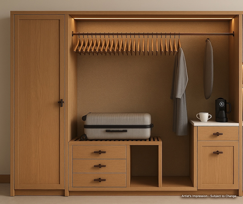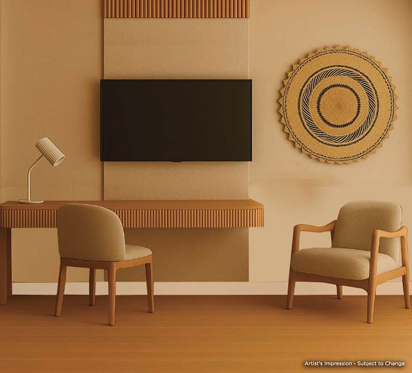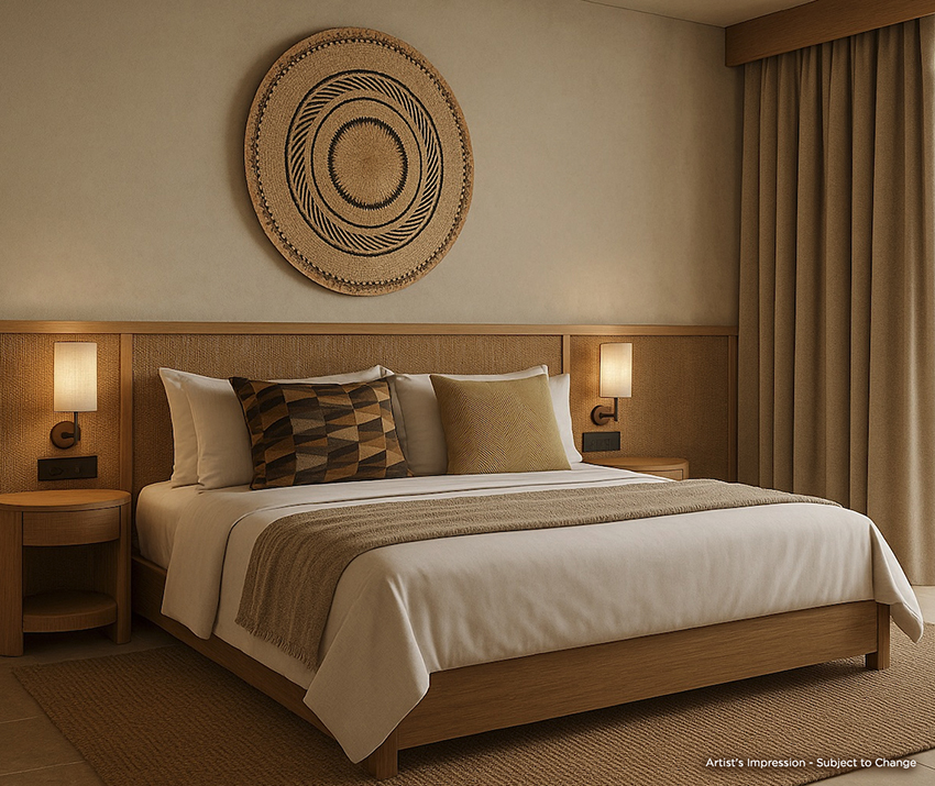 The new Deluxe King Rooms offer a refined yet relaxed retreat, thoughtfully designed to reflect the warmth and natural beauty of Fiji. Soft neutral tones, warm timber finishes and woven textures create a calming atmosphere, while contemporary furnishings and ambient lighting provide both comfort and understated style. With a spacious 31.5m² layout including one king bed, one single sofa bed and private bathroom, the space has been carefully designed to ensure guests can unwind in comfort, whether pausing between flights or beginning their island escape.